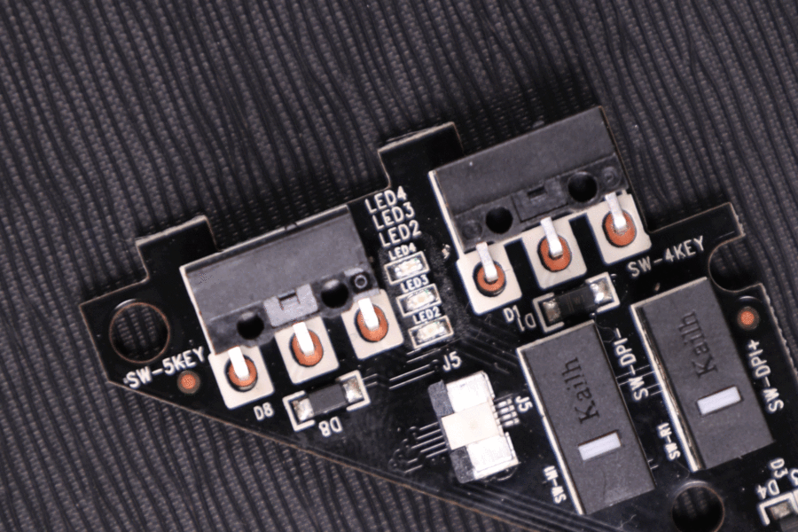 鼠标边侧的功能性侧键采用的为凯华黑点微动,手感较凯华白点更为清脆,反馈力度适中。